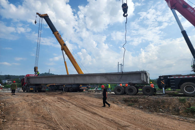 該項(xiàng)目是路橋集團(tuán)承建的重點(diǎn)項(xiàng)目之一,始于南河污水處理廠,起點(diǎn)接國道108線,終點(diǎn)接省道205線,起止全長1.933km。周家窩中橋是該項(xiàng)目的重要節(jié)點(diǎn)工程,全長87.08米,該橋共計(jì)16片預(yù)制箱梁,預(yù)計(jì)8月15日完成所有箱梁架設(shè)。