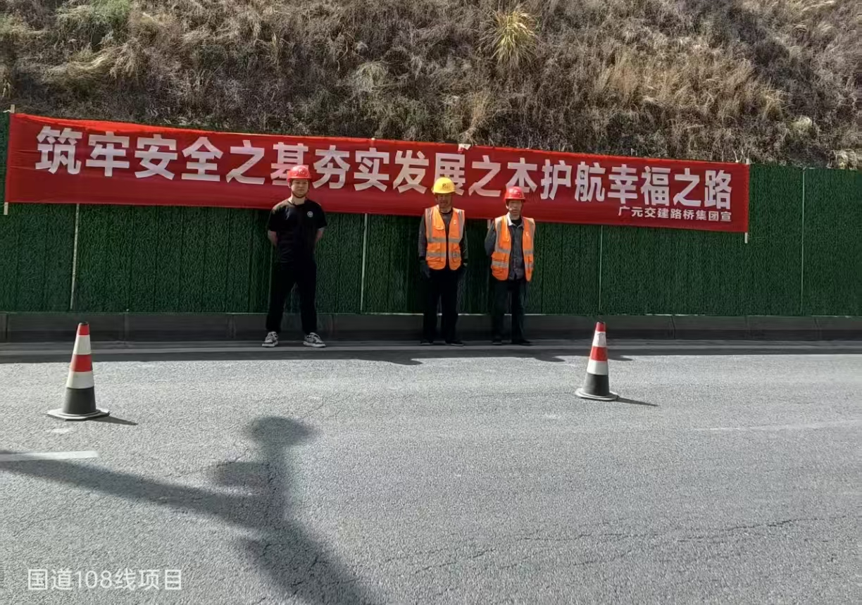 黑石坡至曾家山公路工程項目、G108線利州區(qū)瓷窯鋪至天立學校路口段道路提升工程進行橫幅宣傳